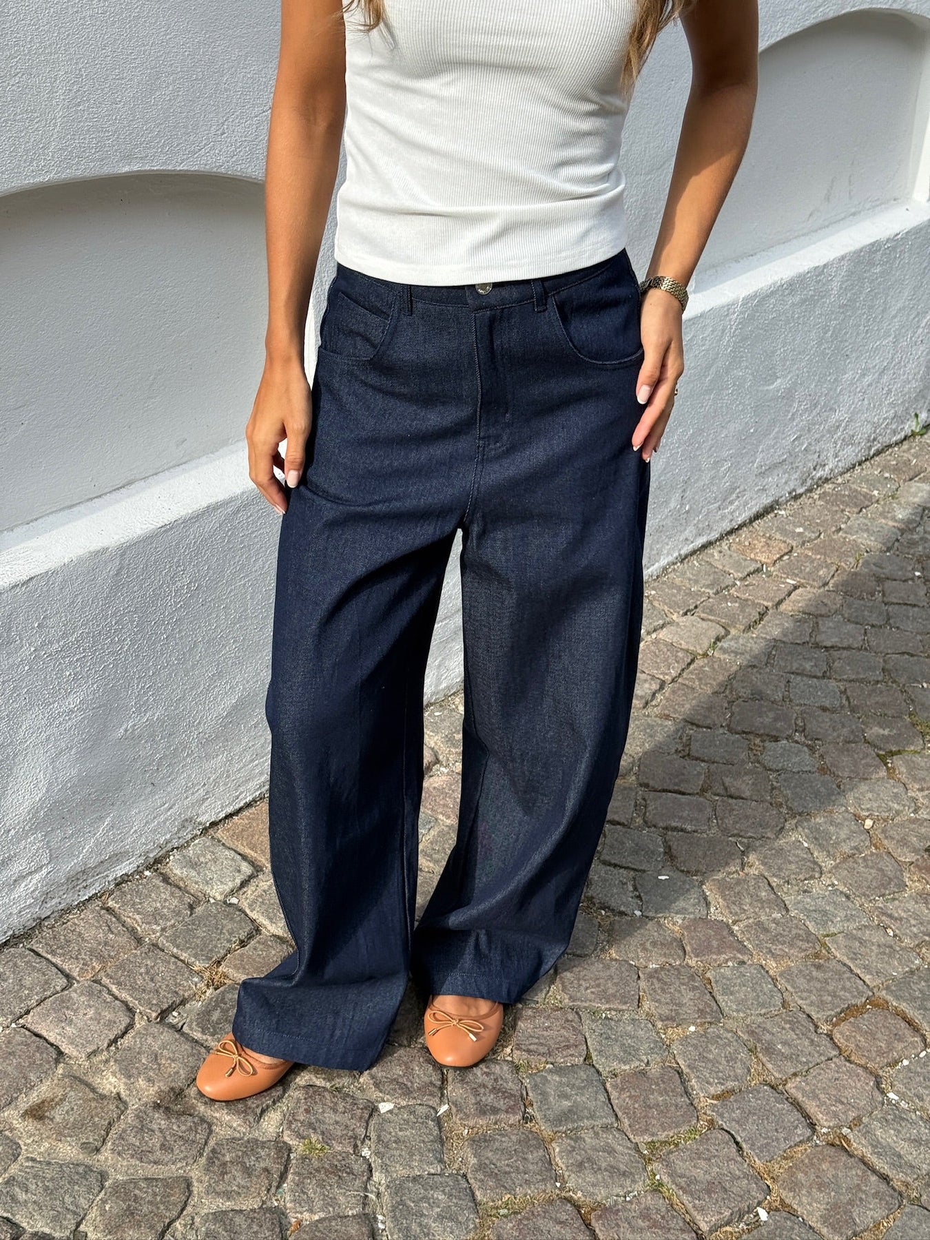 Die Barrel Denim Jeans von Alberte vereinen Komfort und klassische Coolness in einer Silhouette. Sie hat eine entspannte, gerade Passform mit weitem Bein und einer schmeichelhaften hohen Taille für einen mühelosen Look - egal, wie Sie sie stylen.