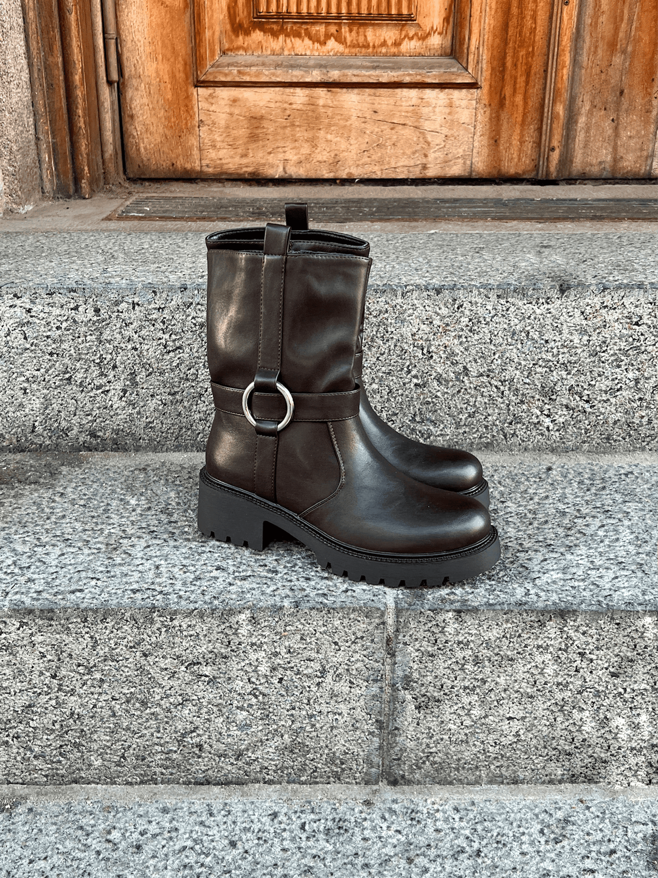 Der Stiefel hat einen Mittelschaft für den Halt und einen praktischen Reißverschluss an der Innenseite für einfaches An- und Ausziehen. Die Alma Biker Boots eignen sich sowohl für den Alltag als auch für ausgefallenere Outfits.