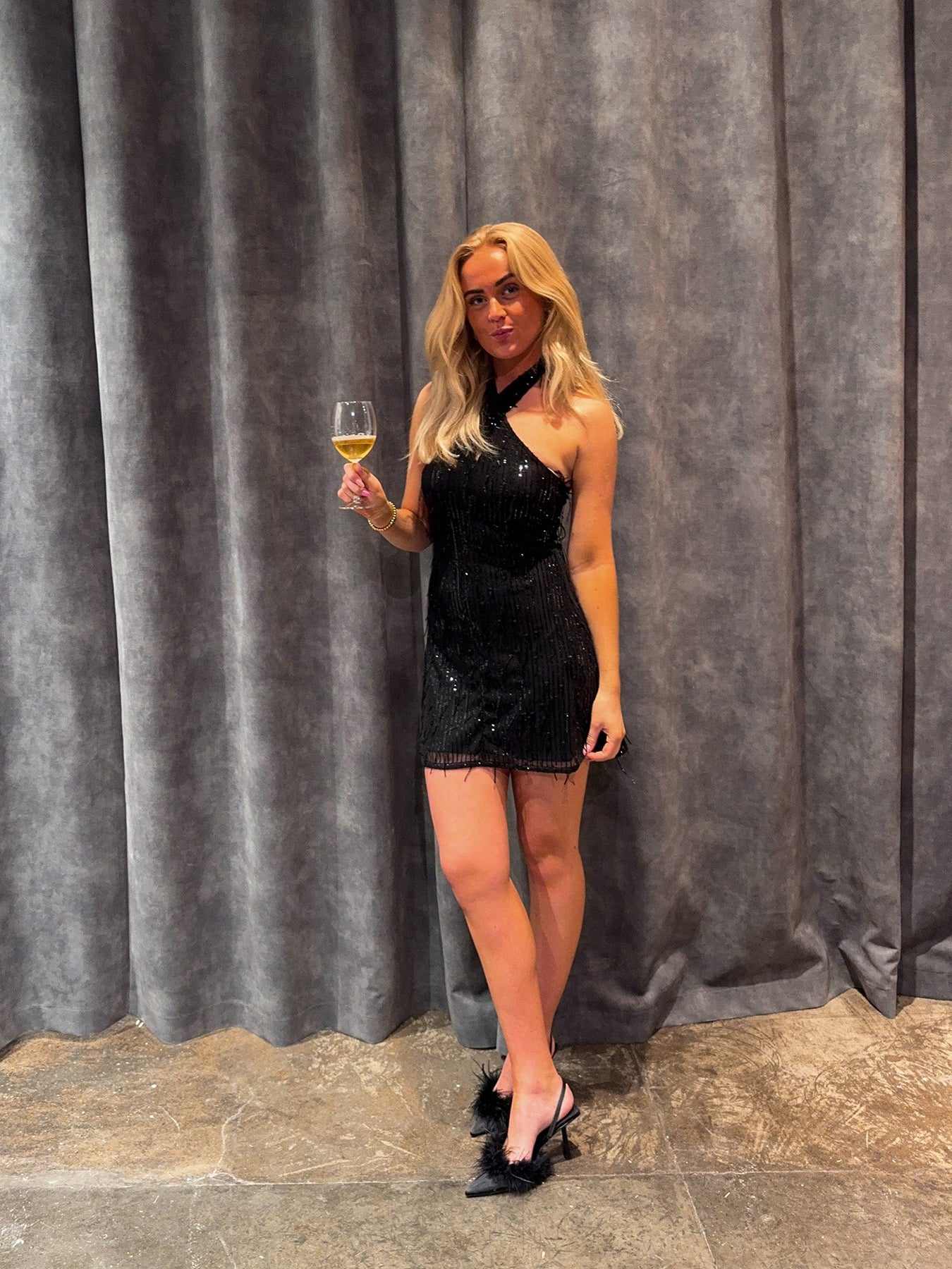 Holen Sie sich das ultimative Neujahrskleid, das Glanz und Eleganz vereint! Dieses rote Kleid ist mit funkelnden Pailletten besetzt, die das Licht aus allen Winkeln einfangen - perfekt für die Silvesterfeier oder jeden anderen festlichen Anlass.
