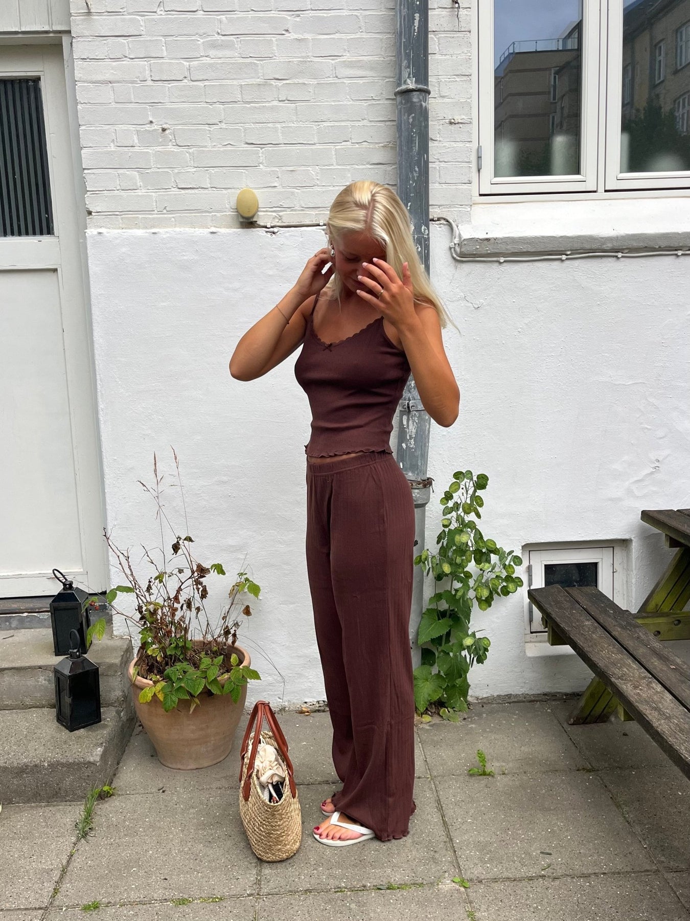 Diese Loungewear-Hose ist Gemütlichkeit pur - ohne Kompromisse beim Stil. Sie ist aus einem leichten und dehnbaren Material mit Rippenstruktur gefertigt, das sich besonders weich auf der Haut anfühlt. Die Passform ist locker und bequem mit einem Gummizug in der Taille, damit sie den ganzen Tag (oder die ganze Nacht auf dem Sofa) bequem sitzt.