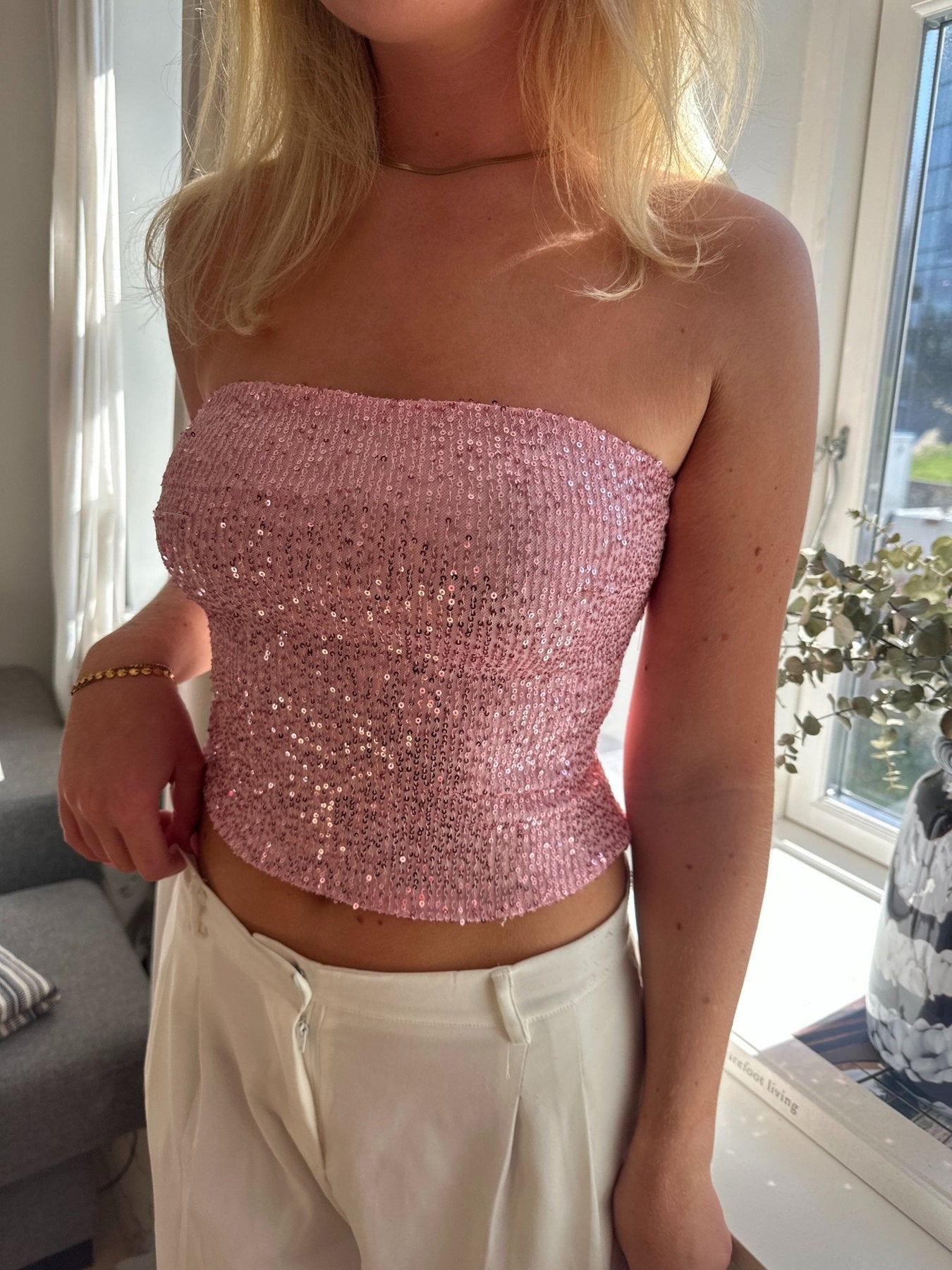 Vervollständigen Sie Ihren Silvester-Look mit diesem umwerfenden rosafarbenen Glitzertop, das mit vielen funkelnden Pailletten besetzt ist! Es fängt das Licht ein und lässt Sie strahlen, wo immer Sie hingehen. Perfekt, um die ganze Nacht durchzutanzen - oder einfach nur, um die Aufmerksamkeit auf sich zu ziehen!