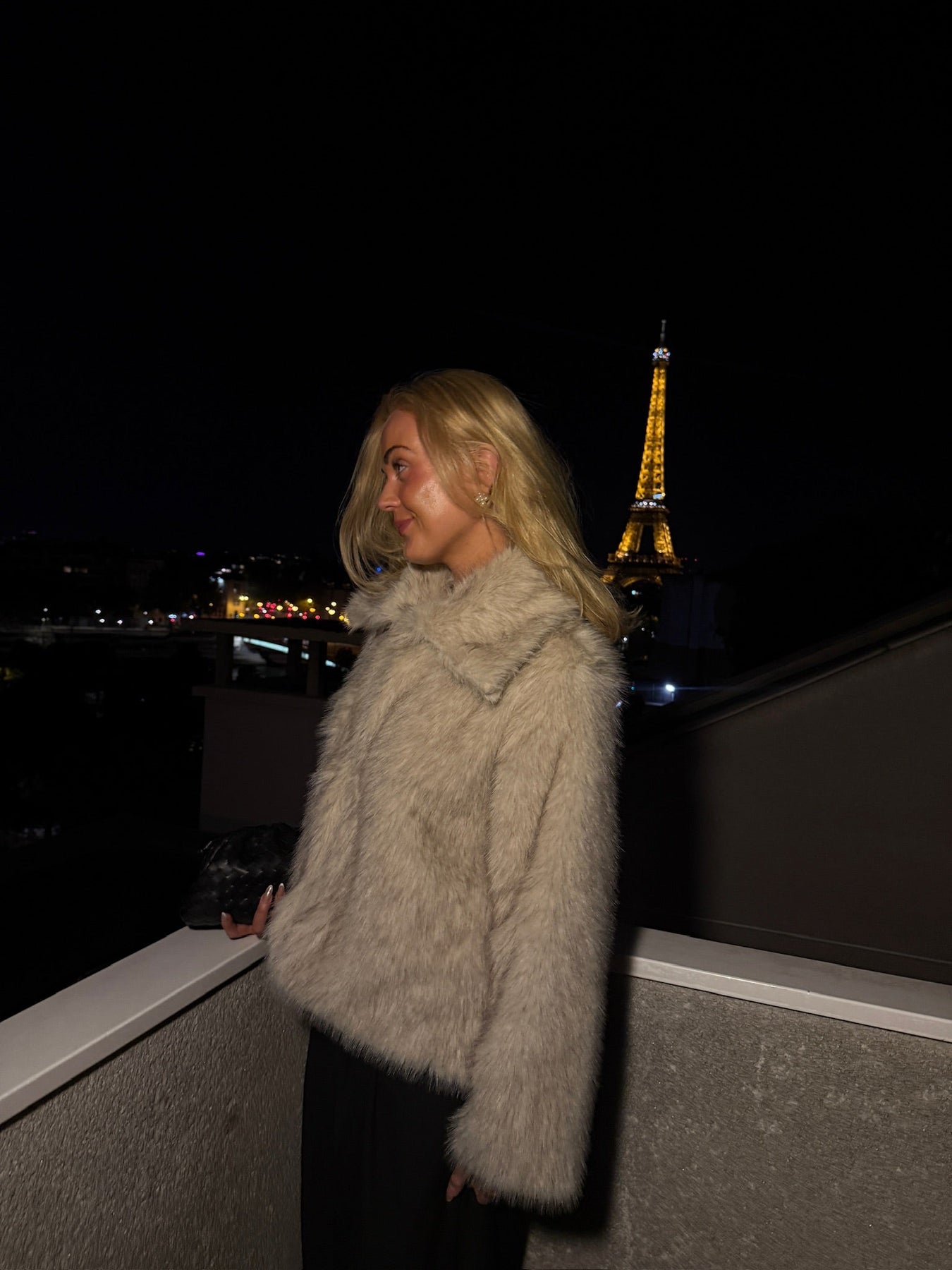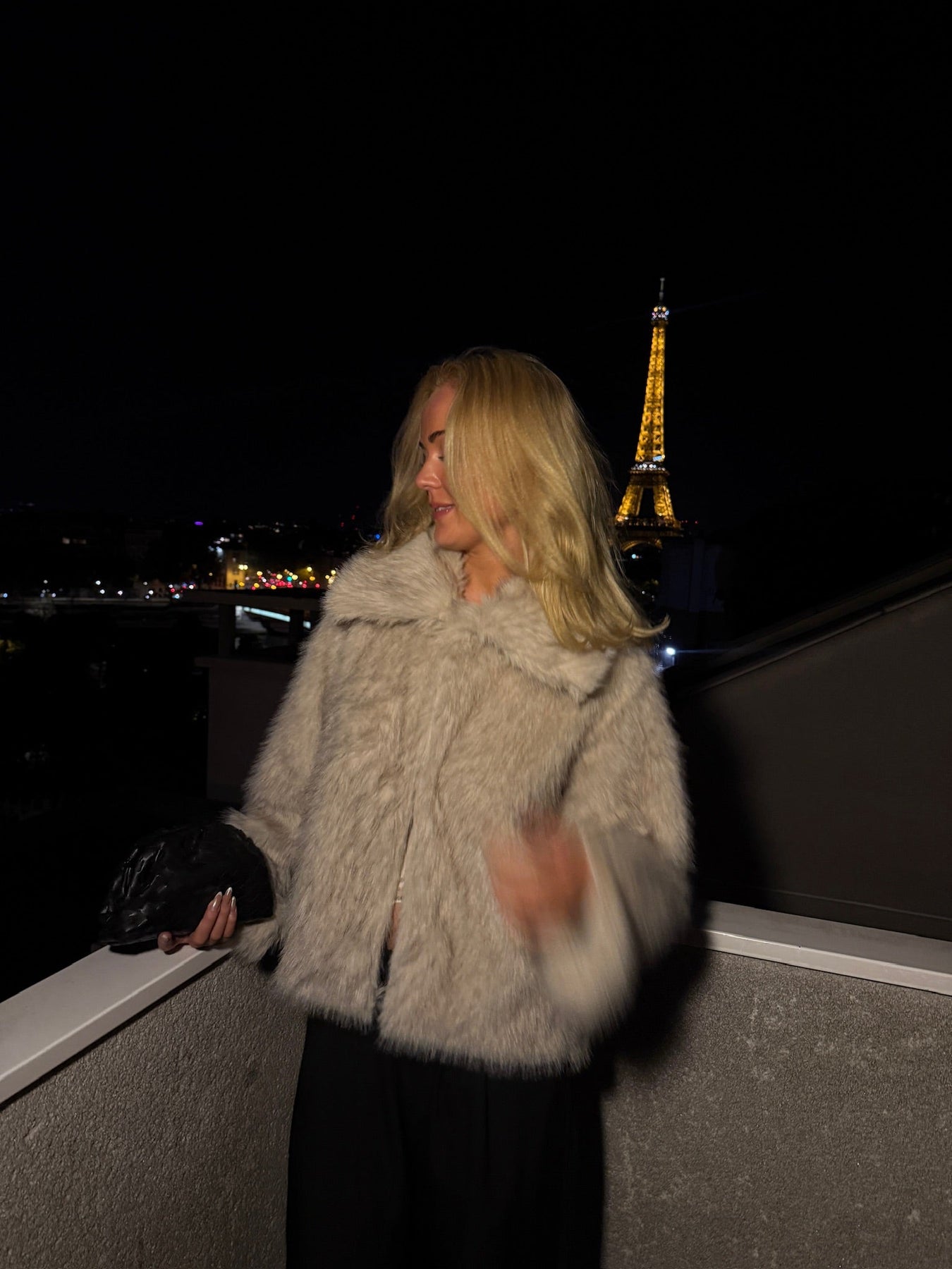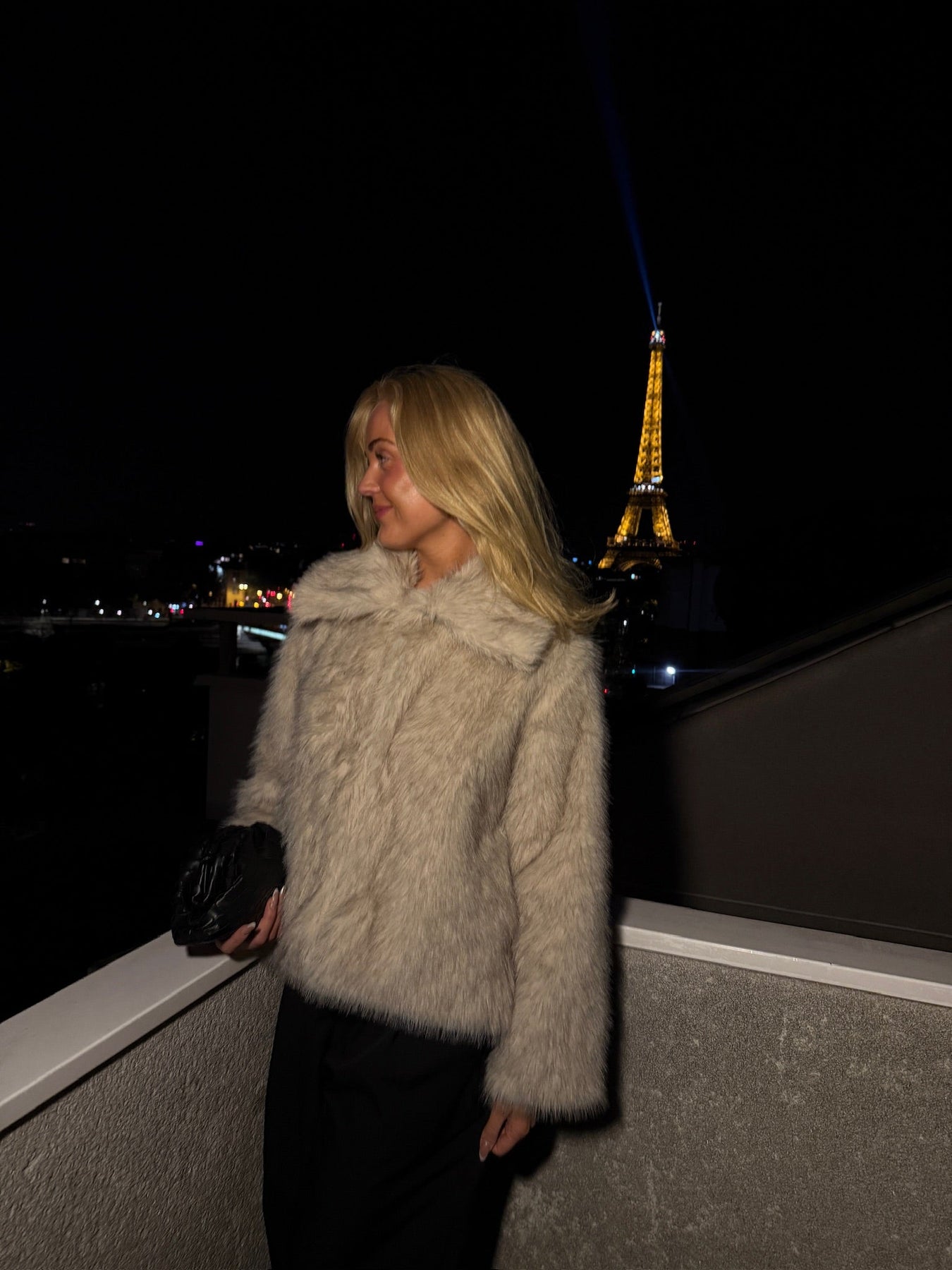 Machen Sie sich bereit für die kühlen Abende mit dieser luxuriösen Kunstfelljacke in einer schönen Sandfarbe. Sie ist weich, warm und stilvoll - perfekt, um jedes Outfit aufzuwerten, ob tagsüber oder abends. Die Jacke hat eine klassische Passform und einen verdeckten Verschluss für einen exklusiven und eleganten Look.