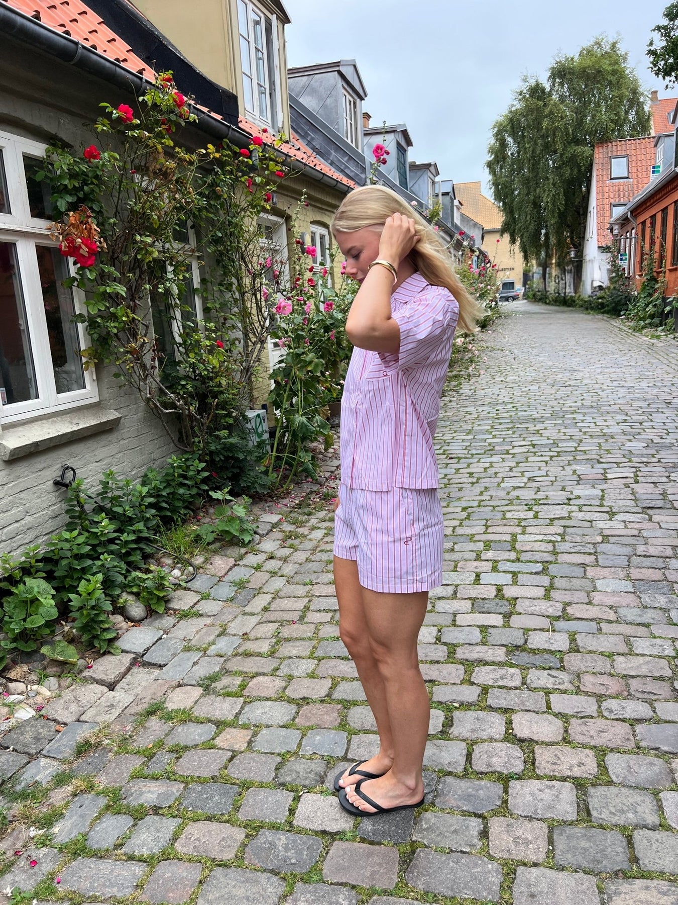 Diese Shorts sind die perfekte Mischung aus lässig und stylisch. Sie haben eine lockere und bequeme Passform, einen elastischen Bund und praktische Seitentaschen - perfekt für heiße Tage, an denen Komfort das Wichtigste ist. Das gestreifte Design sorgt für einen klassischen Sommerlook, während das kleine gestickte Logo einen schlichten, aber exklusiven Touch verleiht.