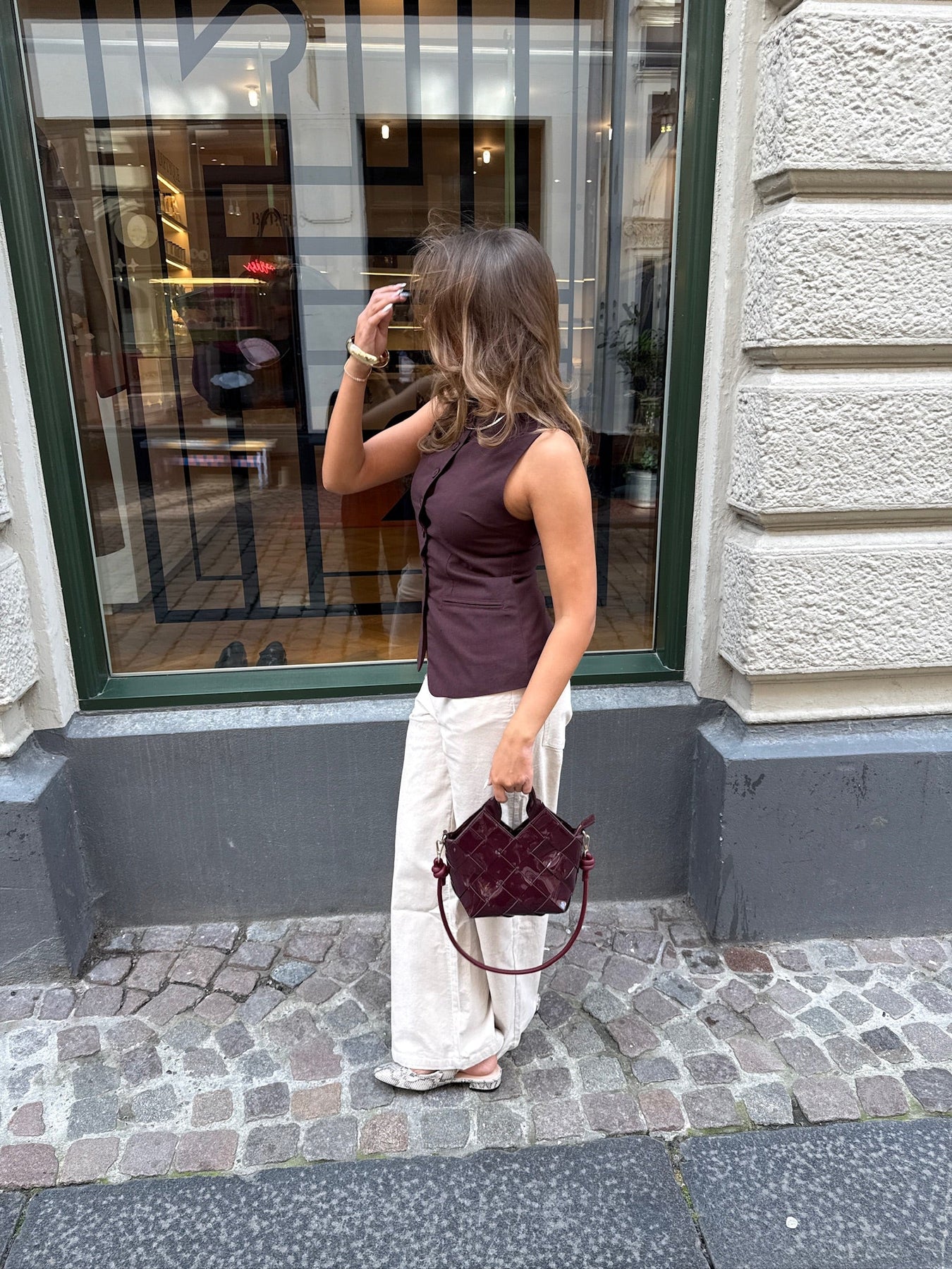 Perfekt mit einer taillierten Weste für einen ausgewogenen und trendigen Look, wie auf dem Bild gezeigt - oder mit einem Strickpullover und Turnschuhen für einen lässigen Alltagslook. Ein Must-Have für alle, die sowohl Stil als auch Komfort wollen.