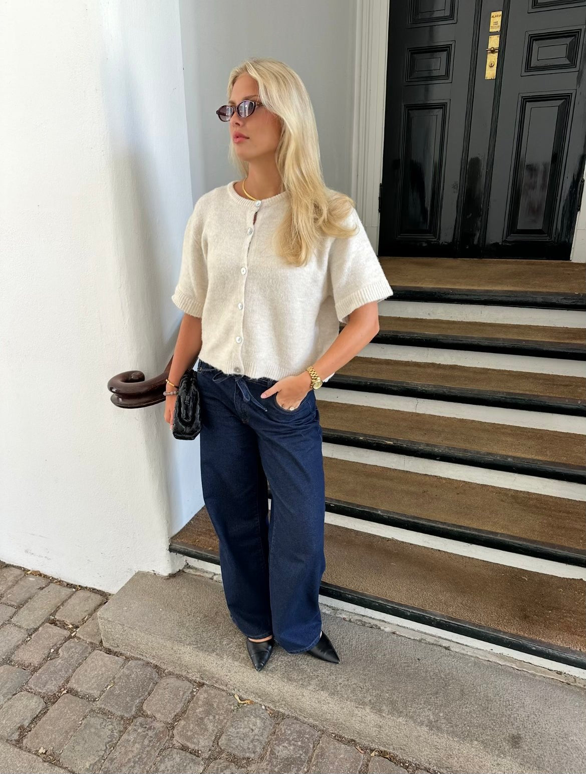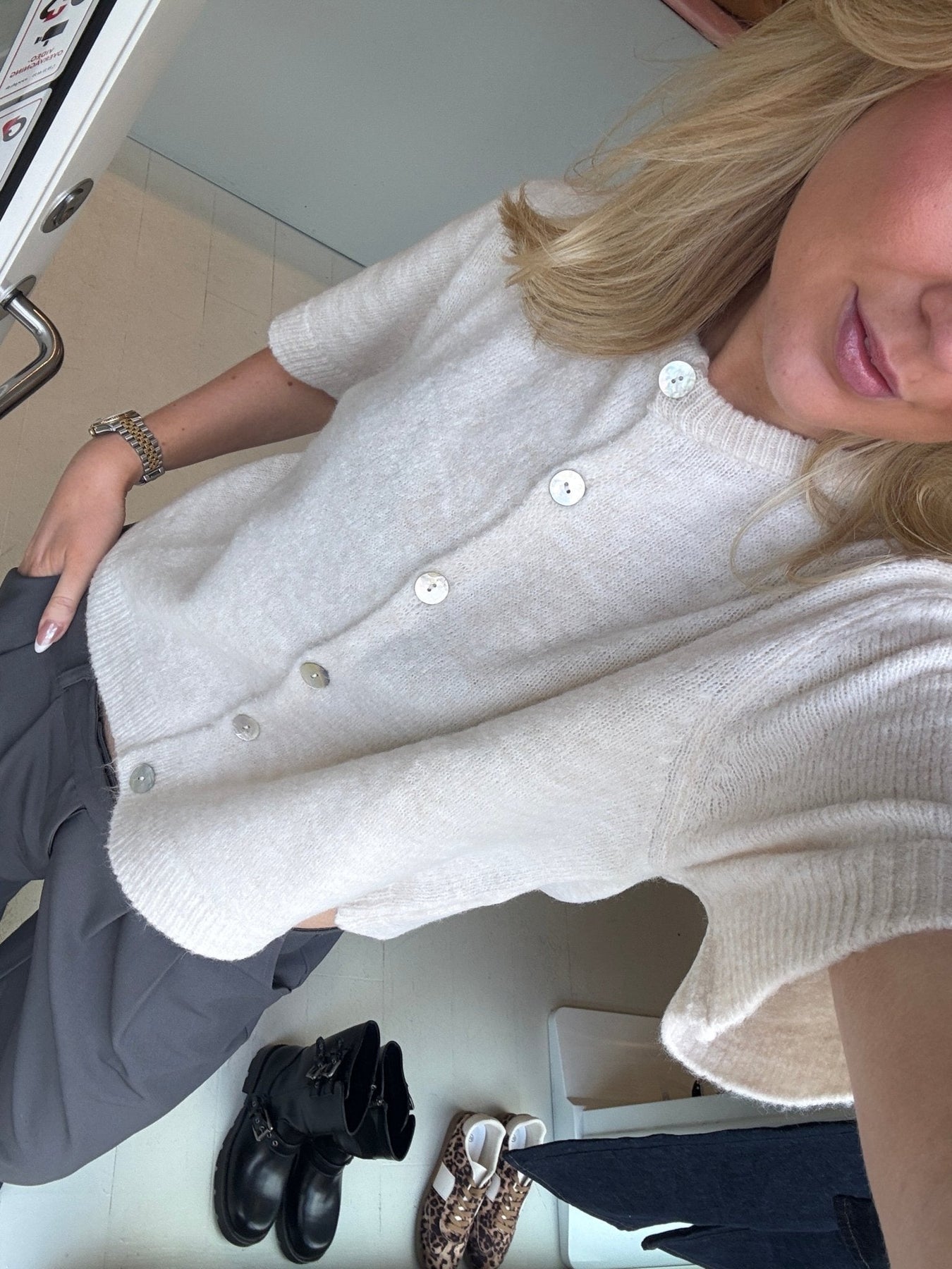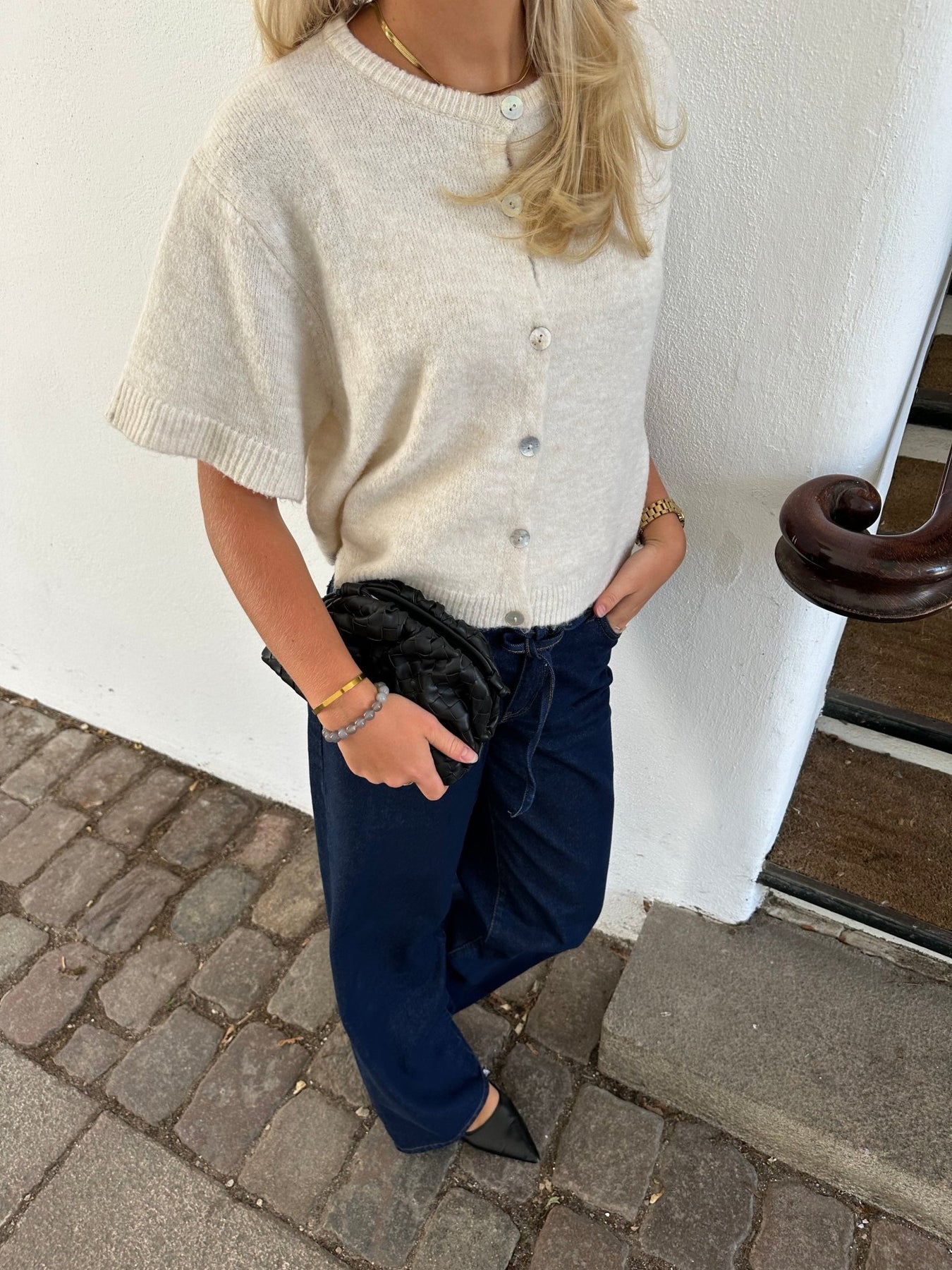 Diese kurzärmelige Strickjacke ist aus feinstem Material gefertigt, das den ganzen Tag über weich und angenehm zu tragen ist. Die leichte, luftige Passform macht sie perfekt für wärmere Tage und verleiht ihr dennoch einen eleganten und lässigen Look. Die Strickjacke eignet sich ideal zum Überziehen über ein Oberteil oder ein Kleid, und dank ihres schlichten Designs lässt sie sich leicht mit fast allem in Ihrem Kleiderschrank kombinieren. Ob im Alltag oder bei festlichen Anlässen, diese Strickjacke ist praktisch und stilvoll zugleich.