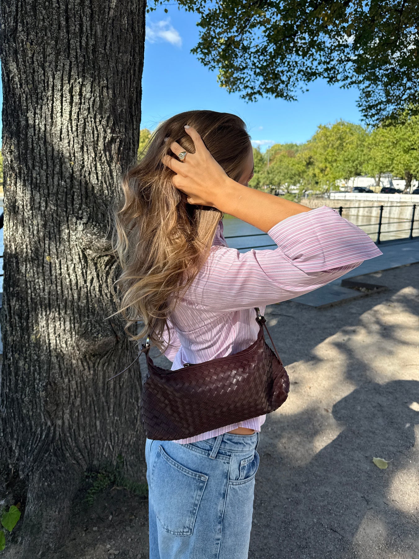 Georgina Waisted Shirt - Light Pink/White Stripe