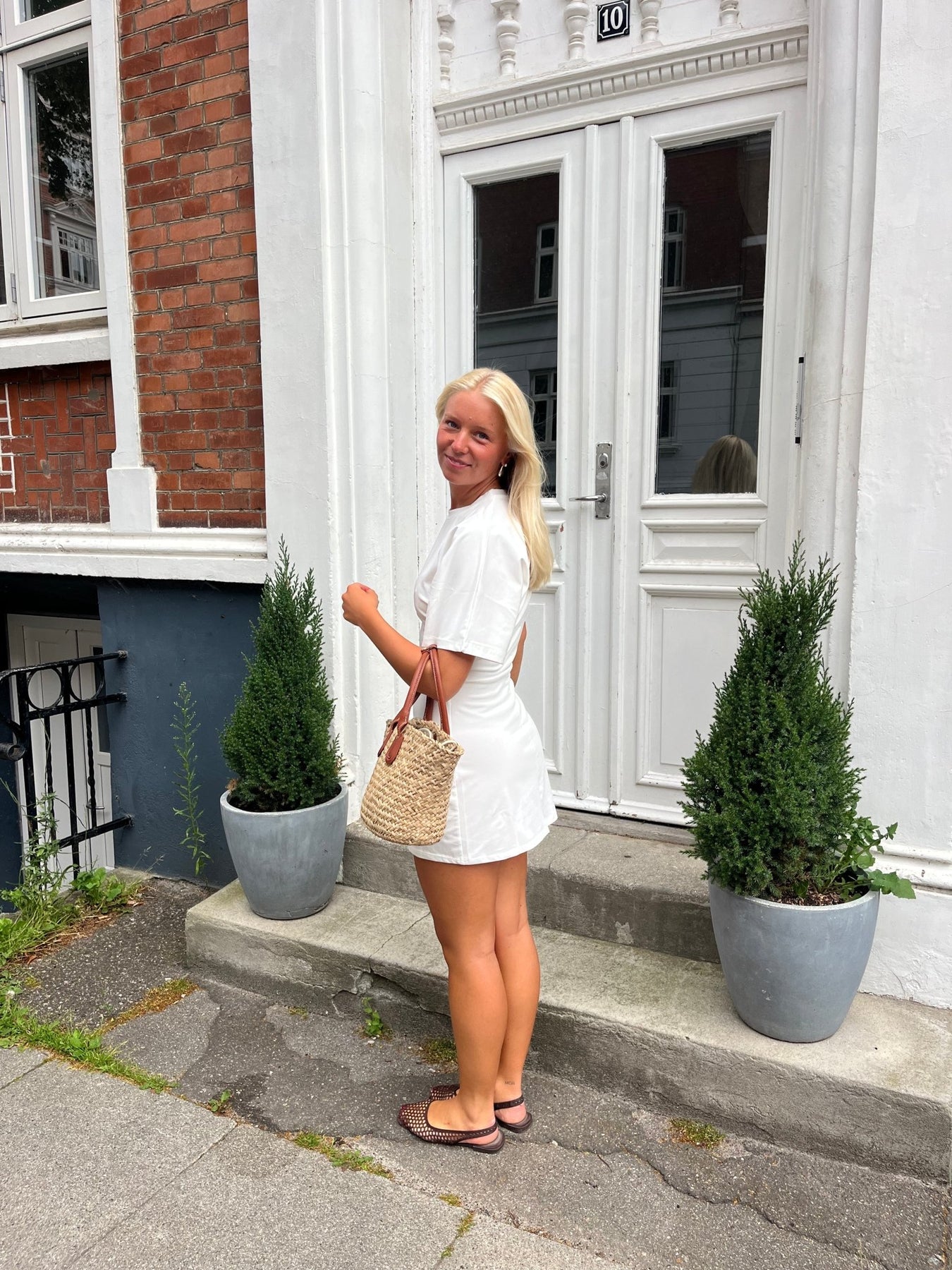Das schlichte und klare Design macht es unglaublich vielseitig - ideal für alles, von sommerlichen Tagen im Freien bis hin zu gemütlichen Abendessen und formellen Anlässen. Kombinieren Sie es mit flachen Sandalen für einen legeren Look oder mit hohen Absätzen und feinem Schmuck für einen eleganten Look. Ein klassisches weißes Kleid, auf das Sie immer zählen können, wenn Sie sich gut gekleidet und selbstbewusst fühlen wollen.