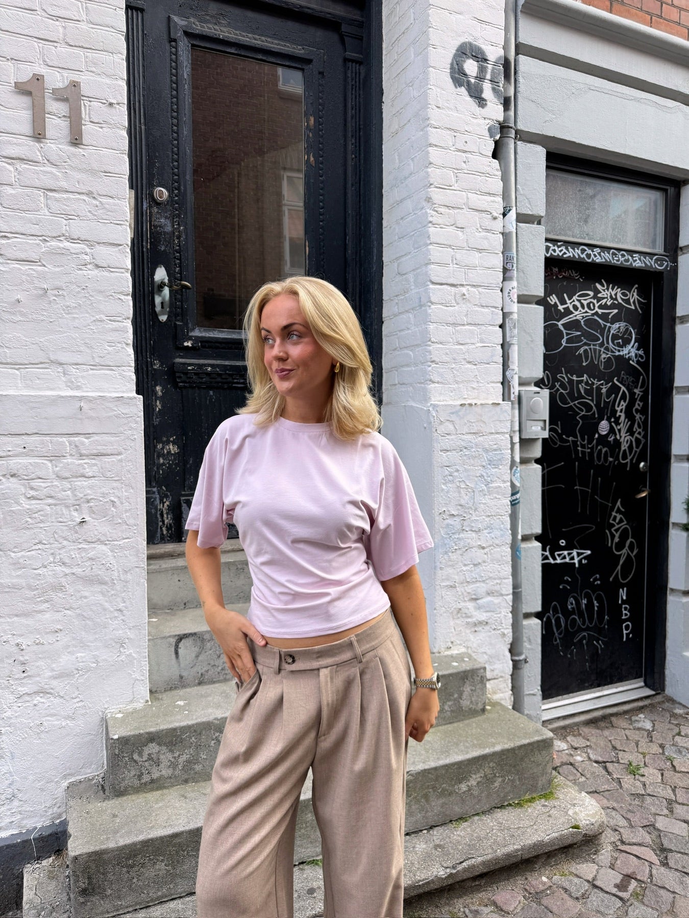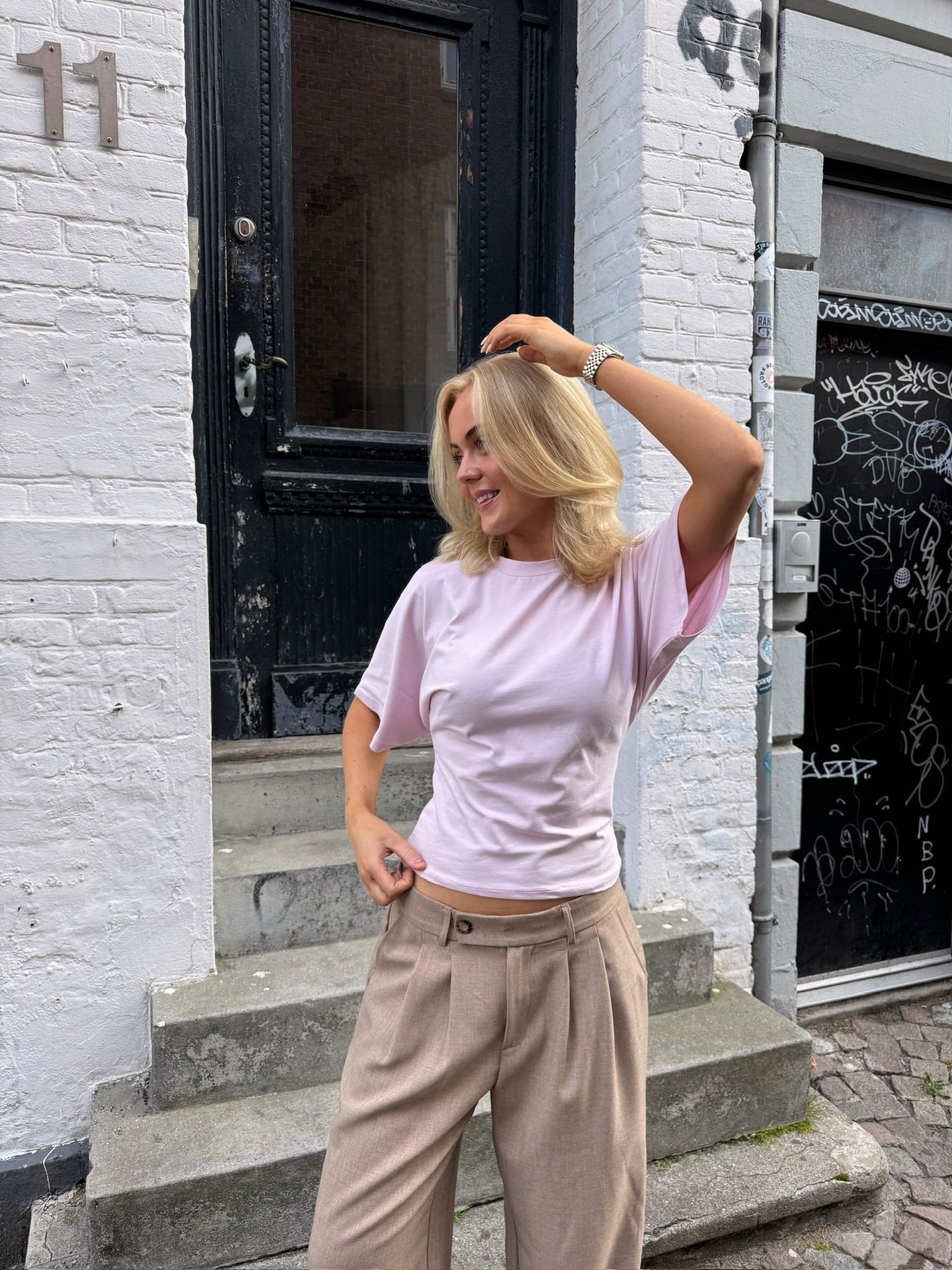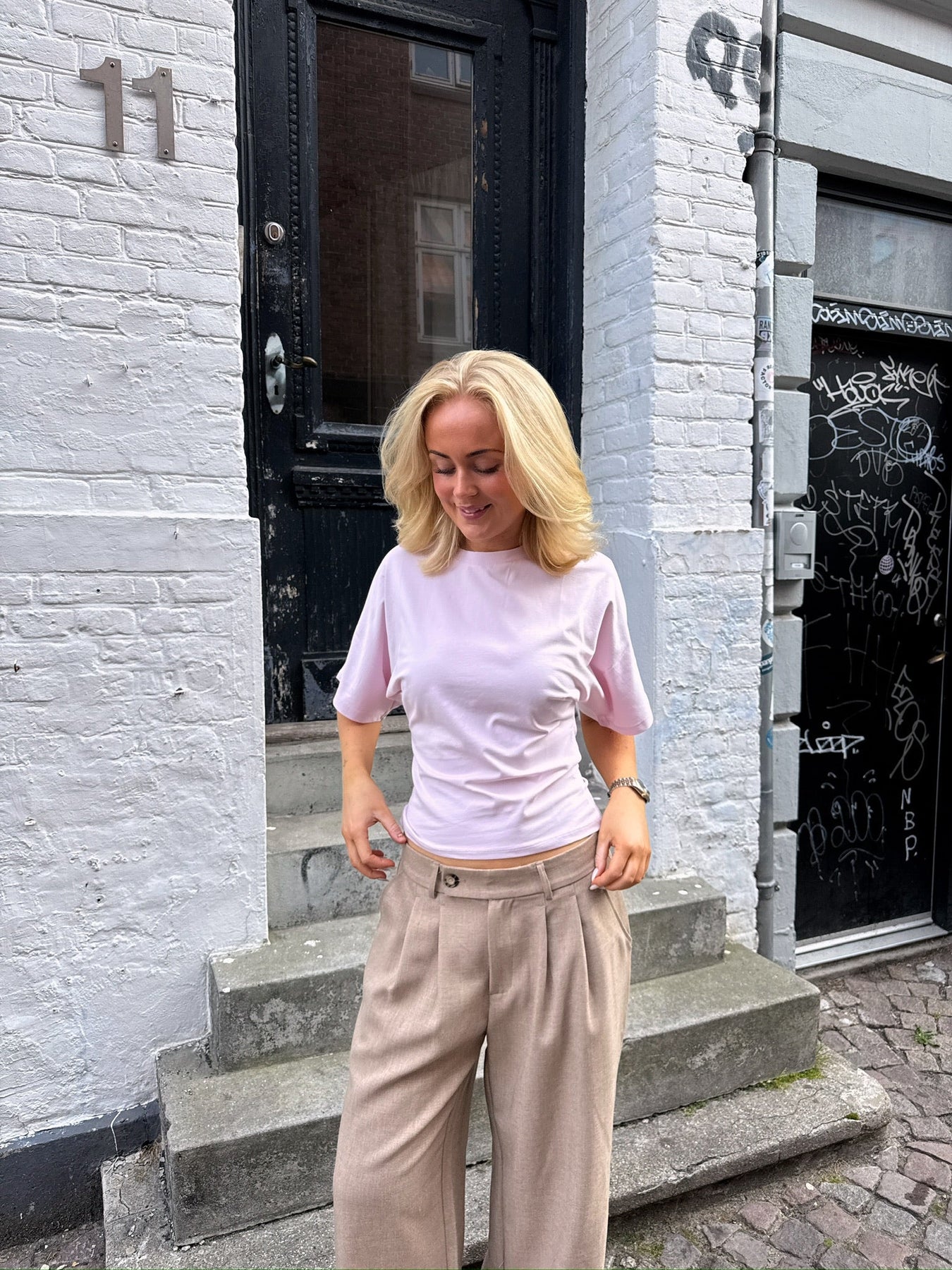 Ein Oberteil, das man immer tragen kann! Es hat eine superschmeichelhafte, taillierte Passform und kurze Ärmel, die es sowohl schlicht als auch feminin machen. Der Stoff ist weich und dehnbar, sodass es gut sitzt, ohne einzuengen.