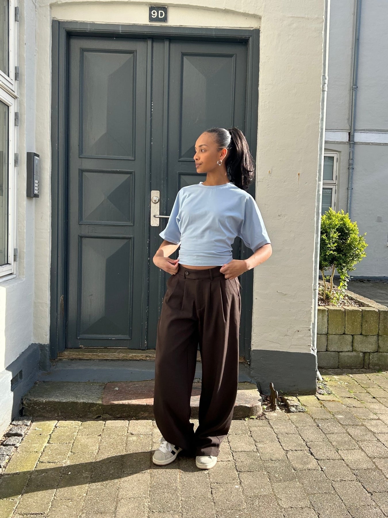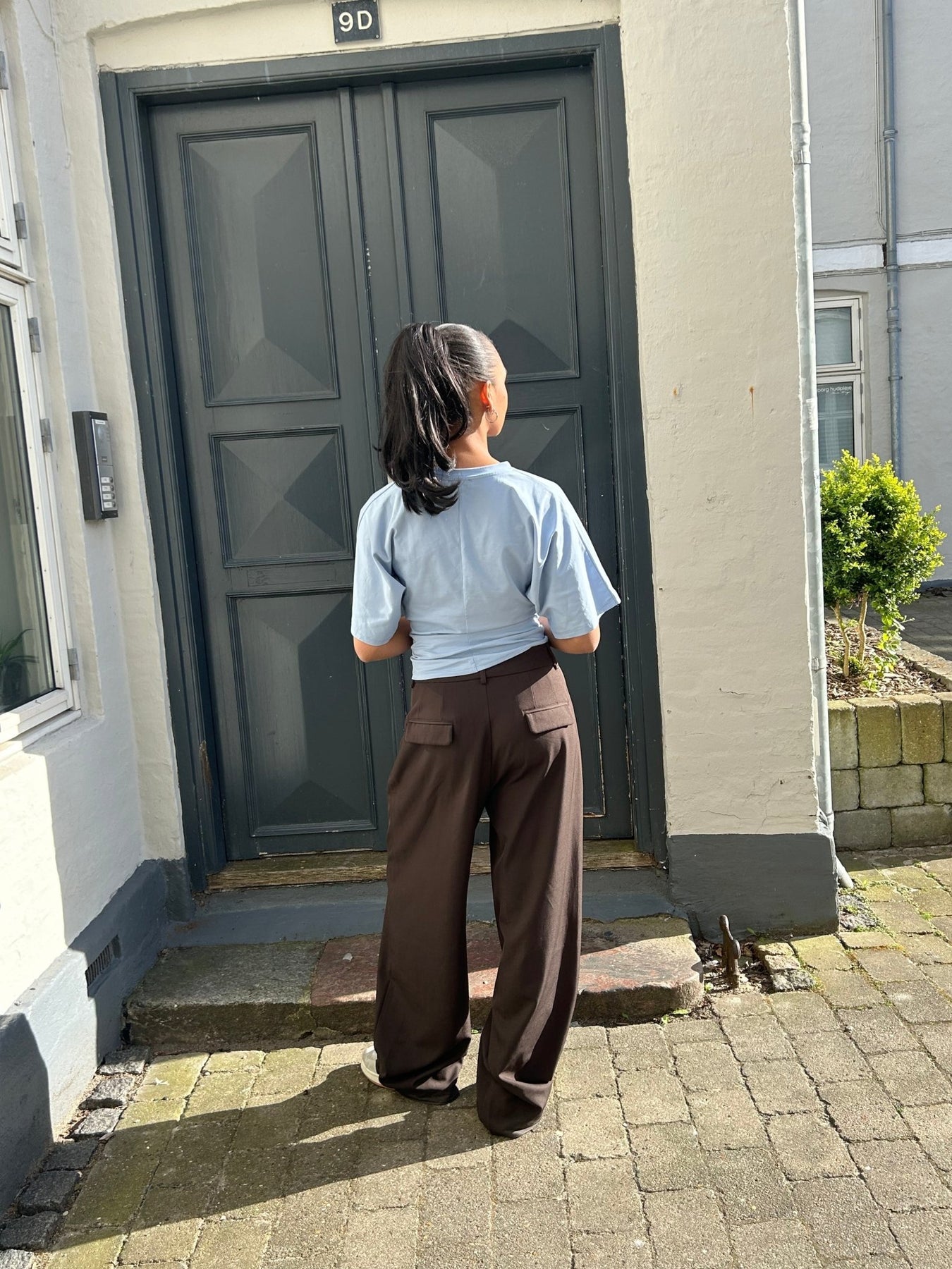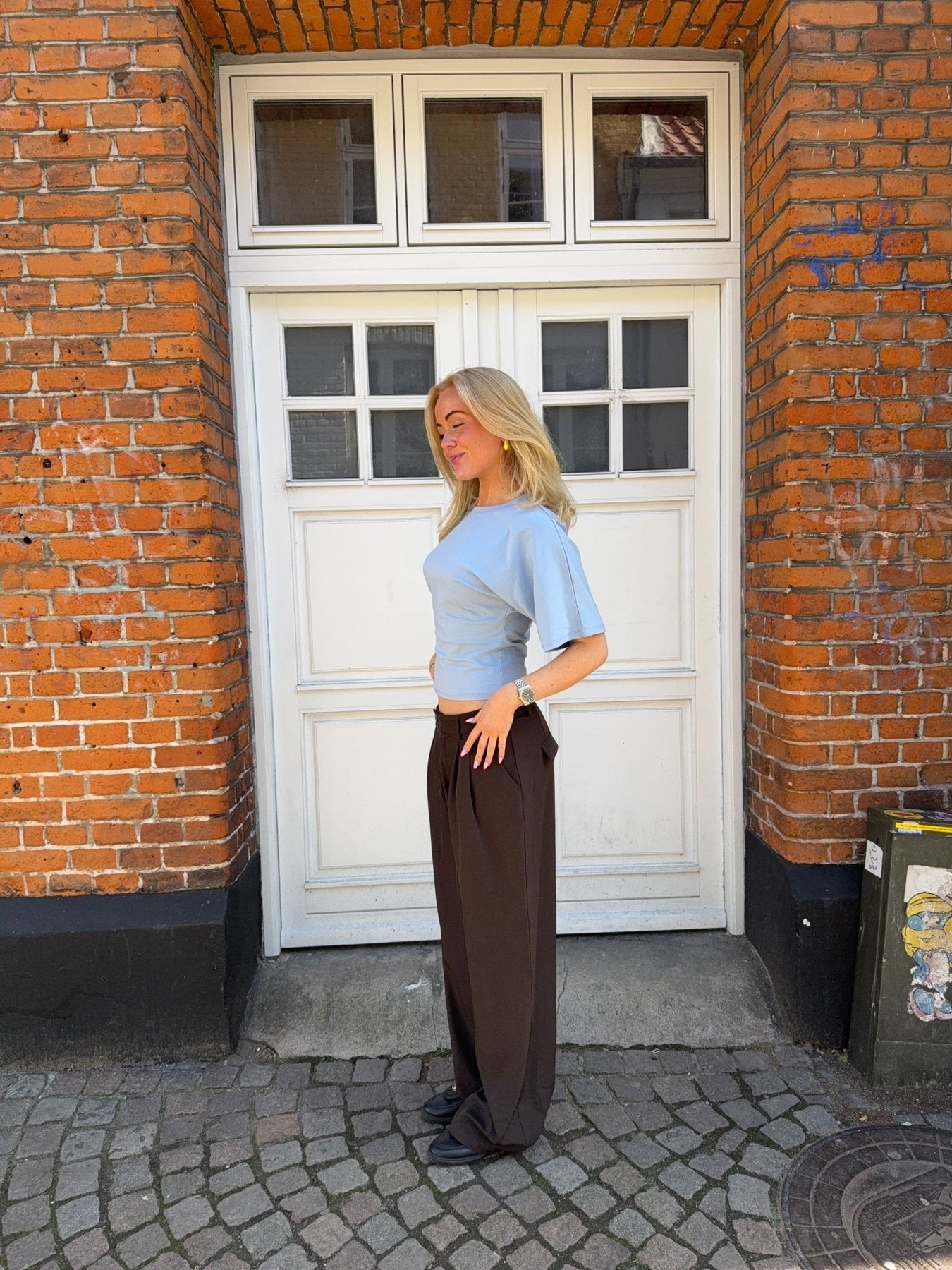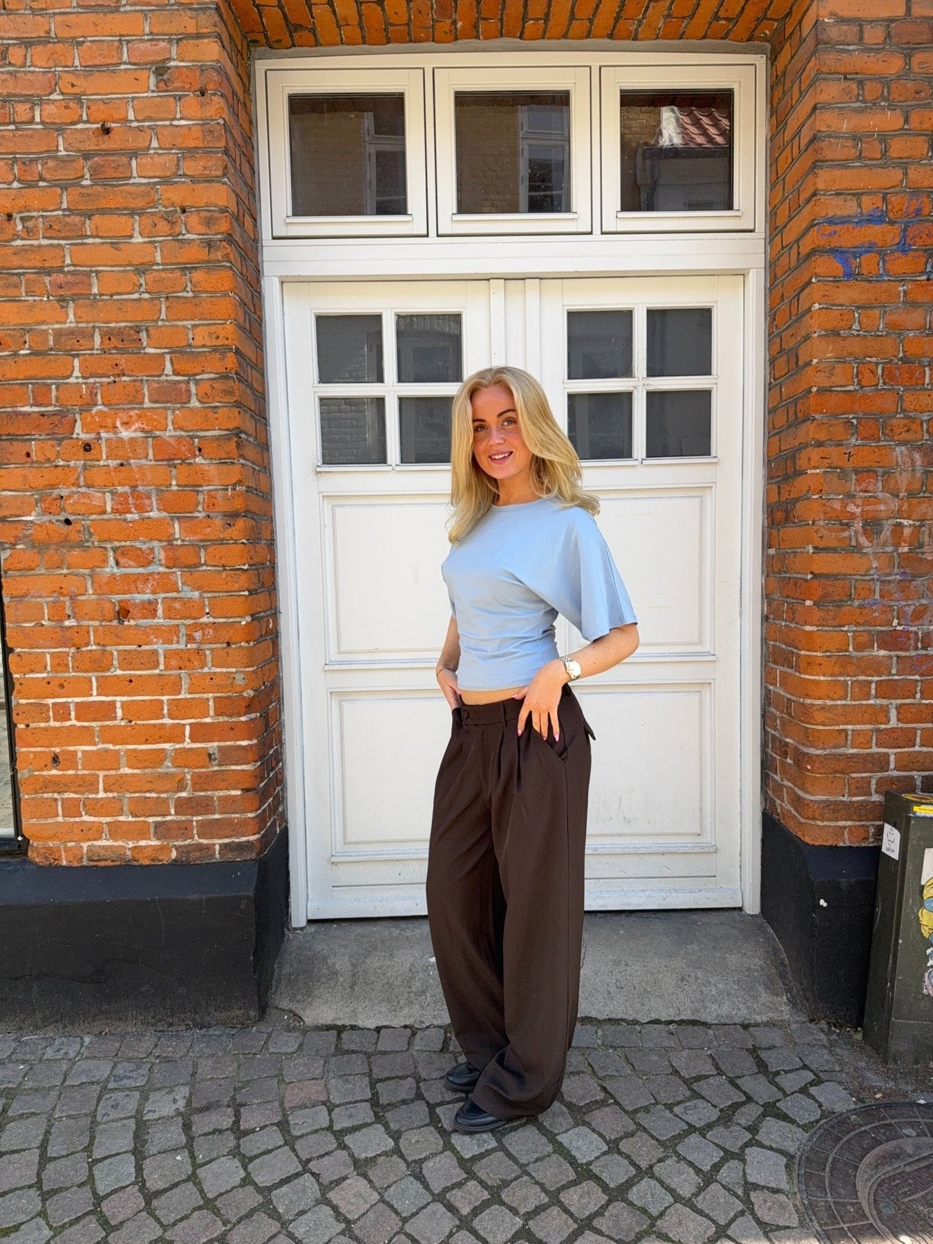 Ein Top, das man immer tragen kann! Es hat eine superschmeichelhafte, taillierte Passform und kurze Ärmel, die es sowohl schlicht als auch feminin machen. Der Stoff ist weich und dehnbar, sodass es gut sitzt, ohne einzuengen.