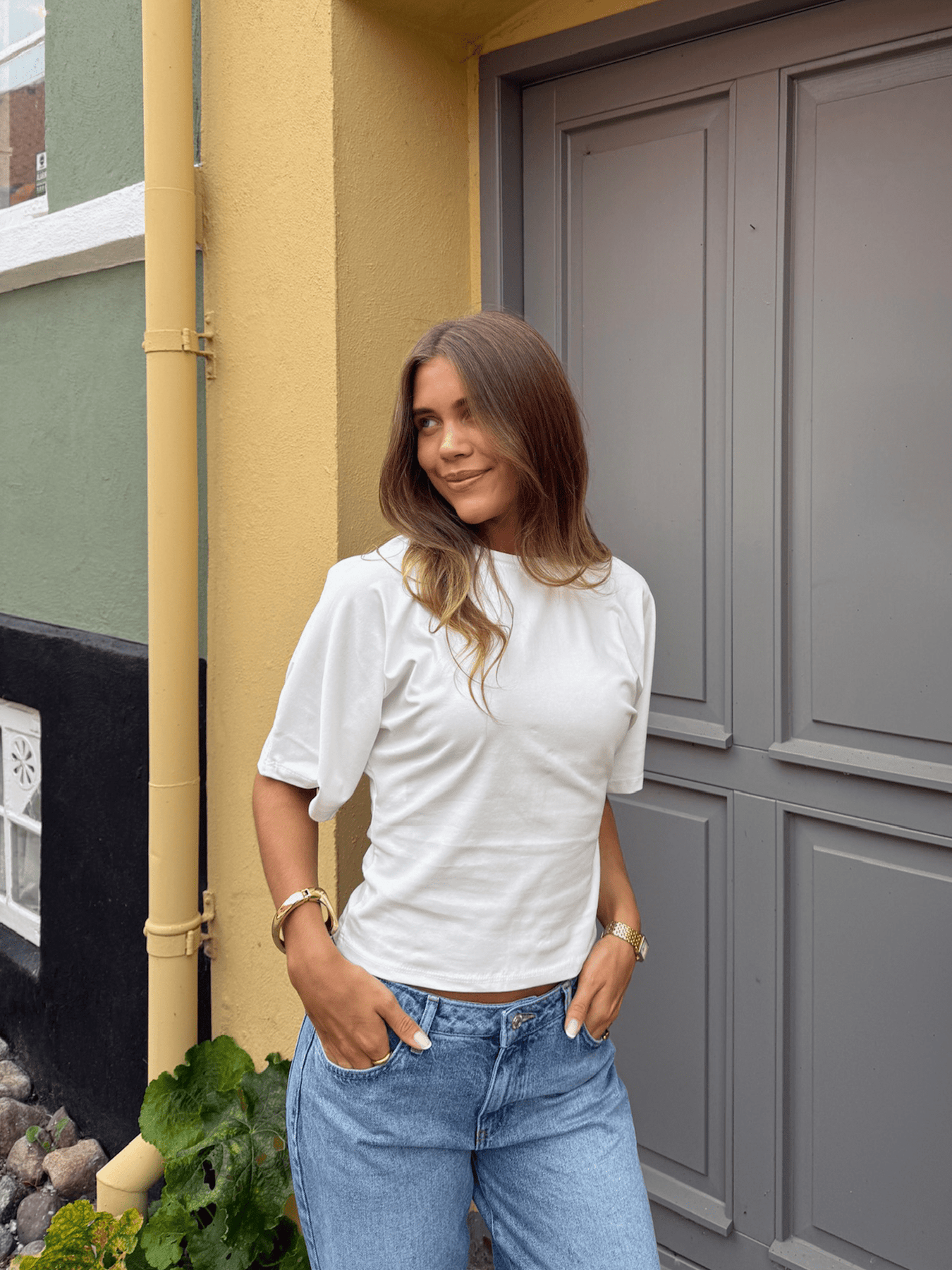 Ein Top, das man immer tragen kann! Es hat eine superschmeichelhafte, taillierte Passform und kurze Ärmel, die es sowohl schlicht als auch feminin machen. Der Stoff ist weich und dehnbar, sodass es gut sitzt, ohne einzuengen.