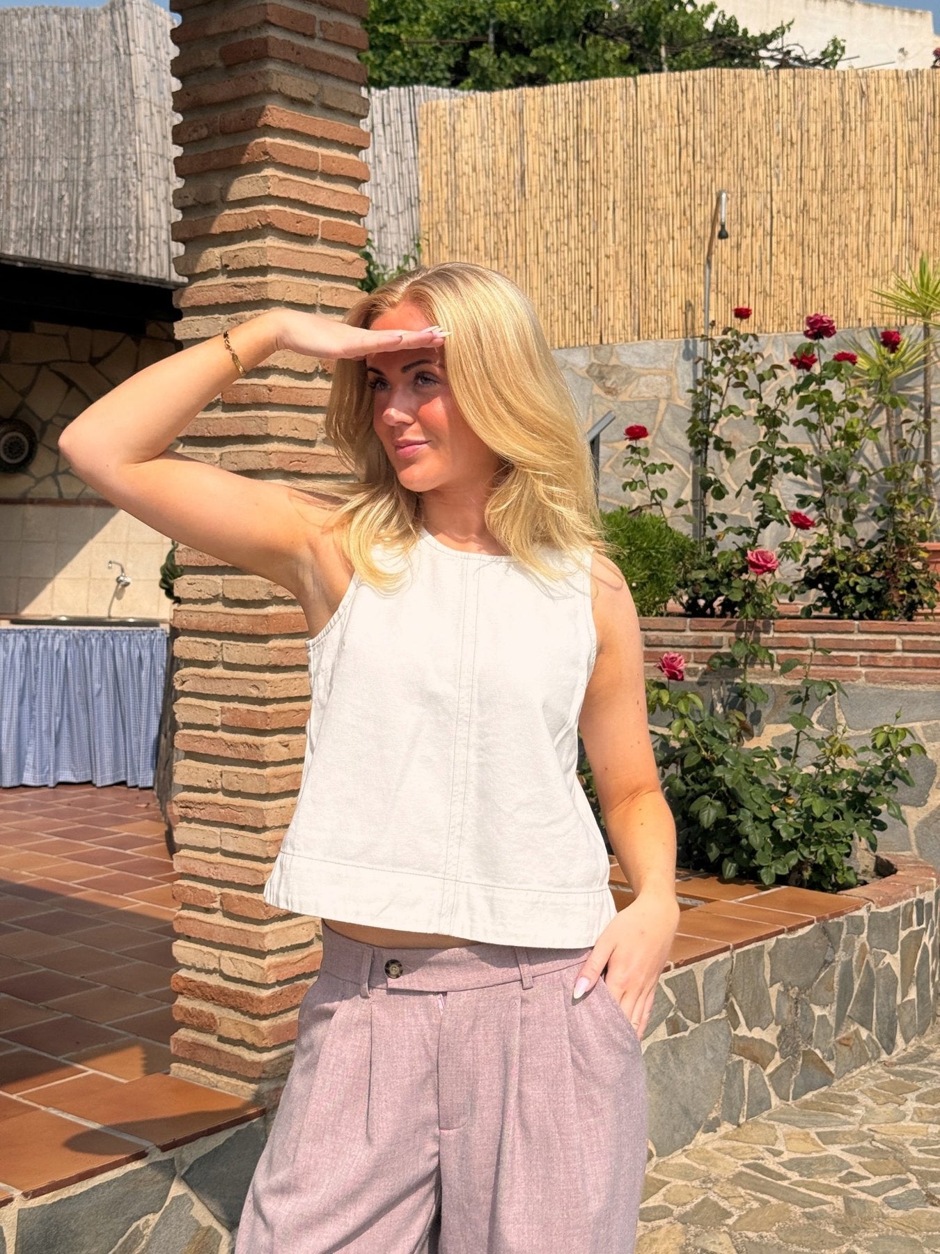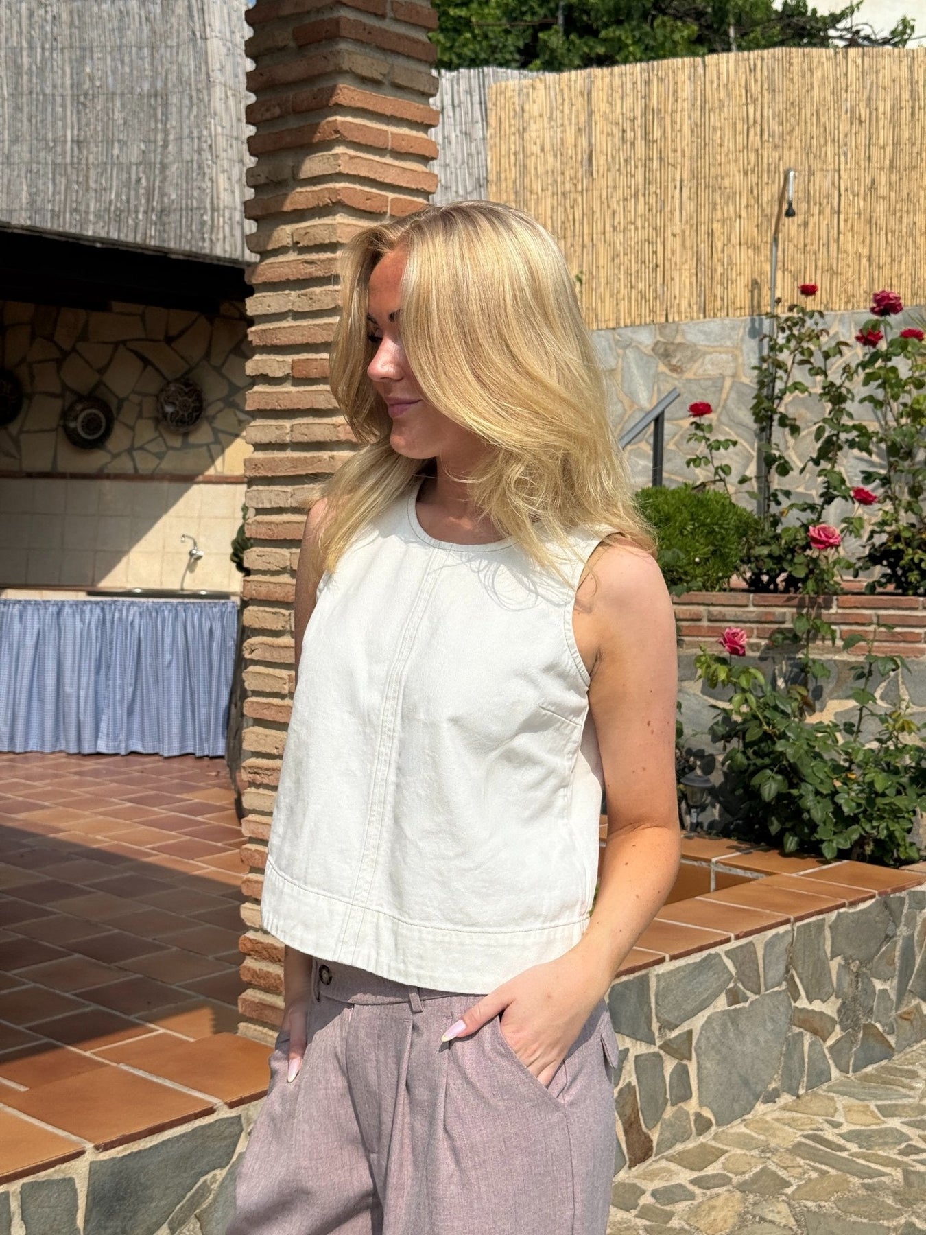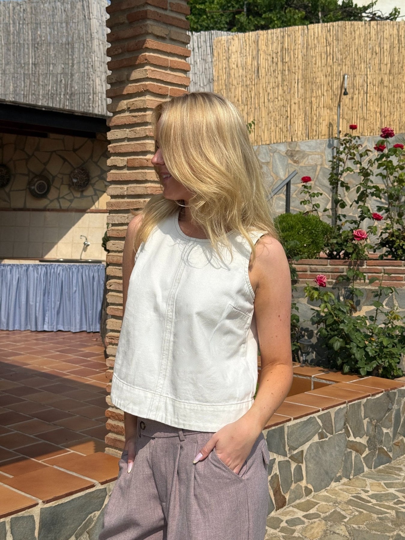 Louise Denim Tank Top - White