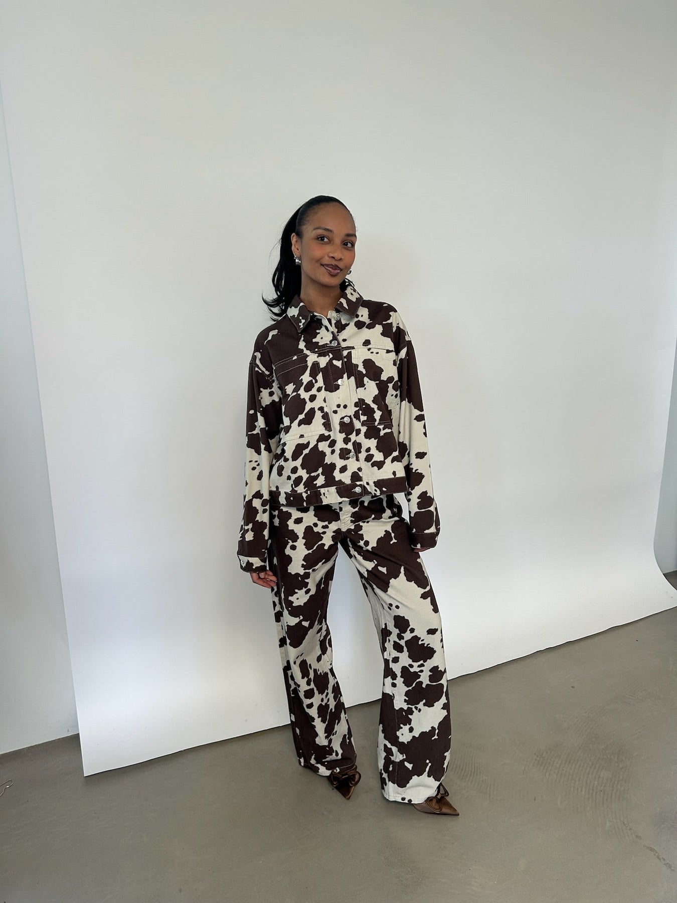 Jeansjacke mit Kuhmuster