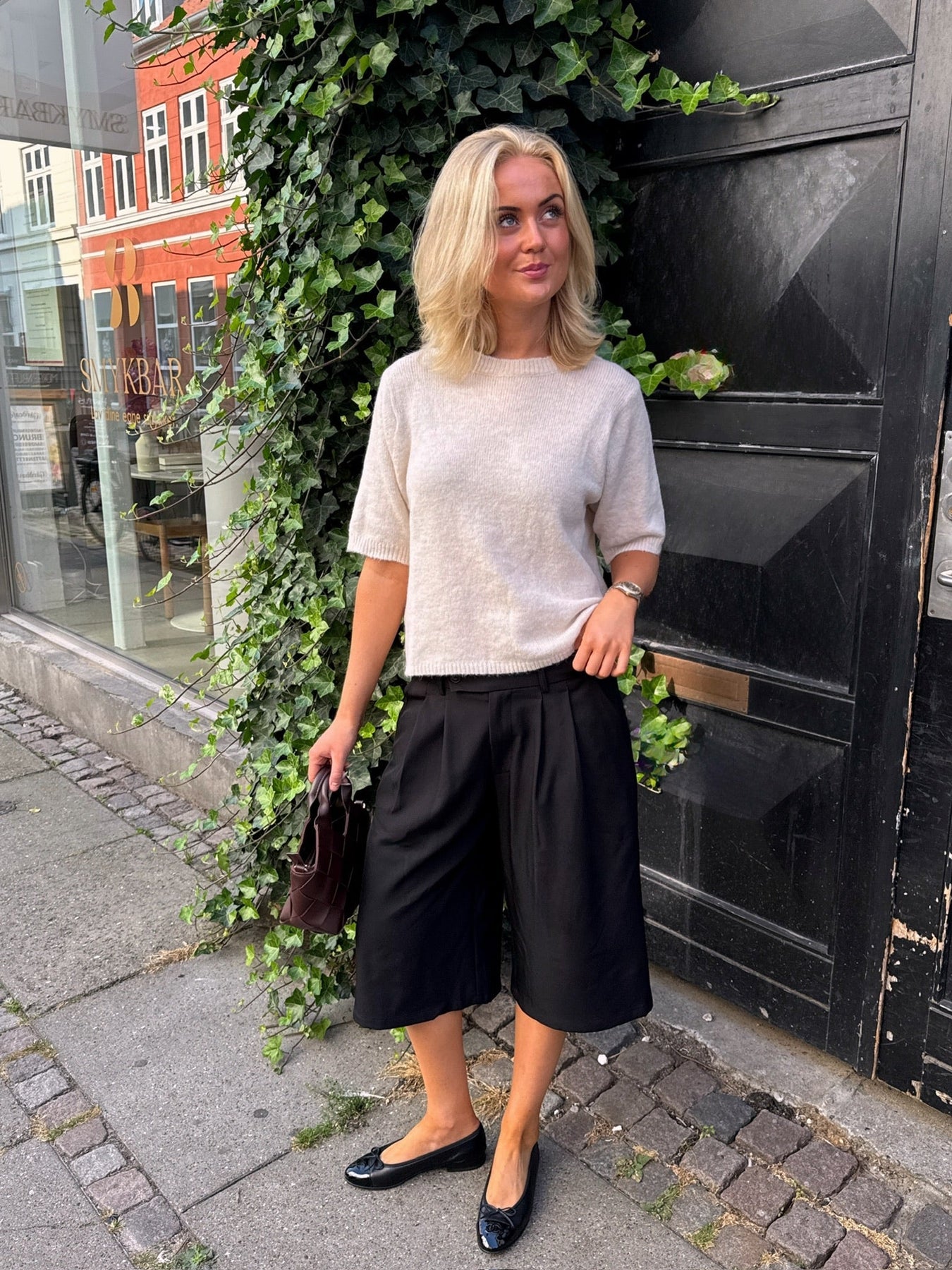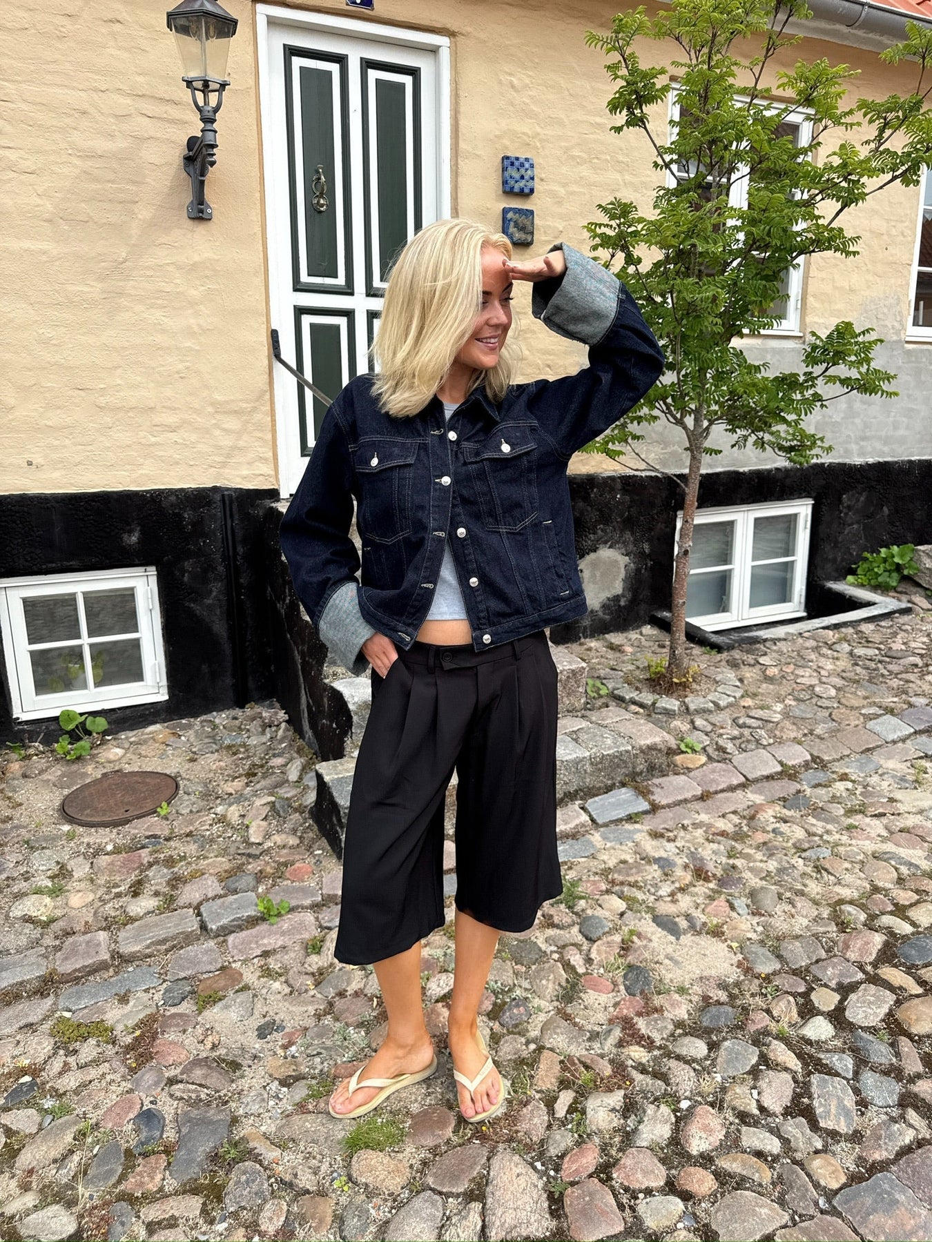 Diese schwarze Nora Jorts kombiniert klassisches Design mit modernem Komfort. Das Design ist schlicht und zeitlos, aber mit eleganten Details, die den Look aufwerten und sie zu einem Must-Have in jedem Kleiderschrank machen. Die lockere, knielange Passform kombiniert Komfort und Stil, so dass diese Shorts sowohl für legere Tage als auch für elegantere Outfits geeignet sind.