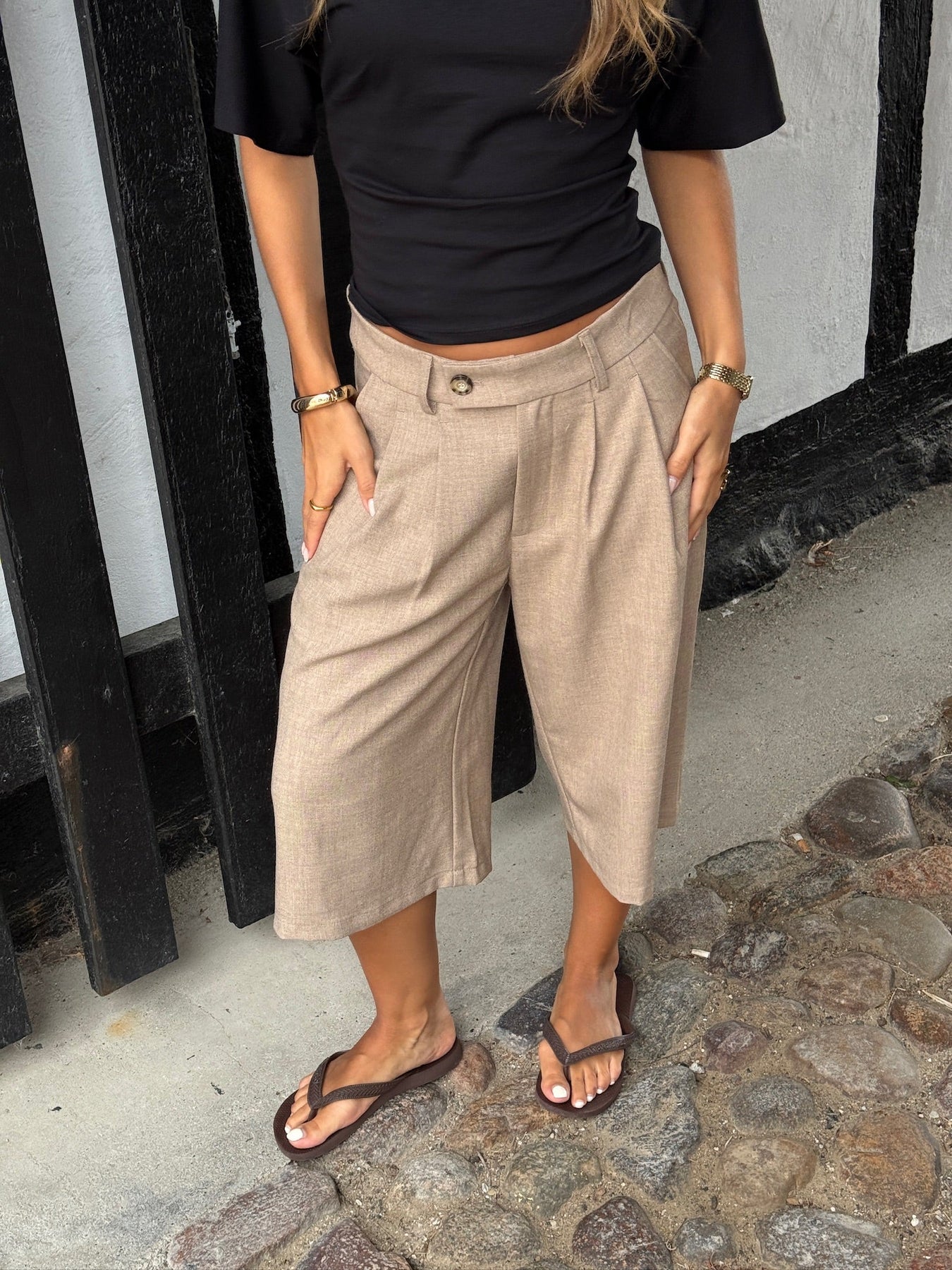 Eine entspannte Silhouette trifft auf klassische Schneiderkunst. Unsere BEIGE TAILORED JORTS hat einen raffinierten Look und eine bequeme Passform - perfekt für alltägliche und ausgefeiltere Sommerlooks.