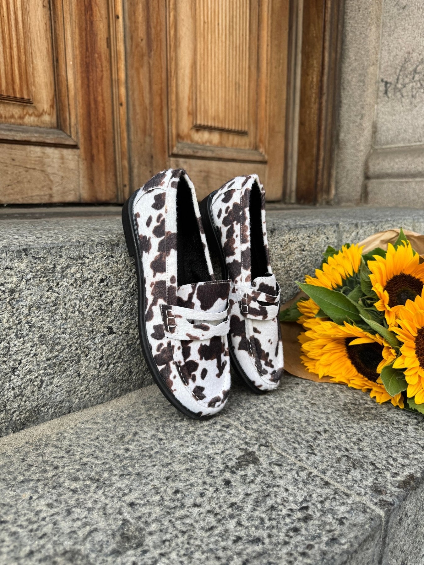 Für alle, die sich trauen, aufzufallen! Diese Loafer kombinieren klassisches Design mit einem coolen und verspielten Twist in Form des beliebten Kuh-Prints. Die Schuhe haben eine bequeme Passform, eine flache Sohle und eine weiche Oberfläche, die sich genauso gut anfühlt wie sie aussieht. Sie sind perfekt für den Alltag und für Anlässe, bei denen Sie ein Zeichen setzen wollen - ohne auf Komfort zu verzichten.