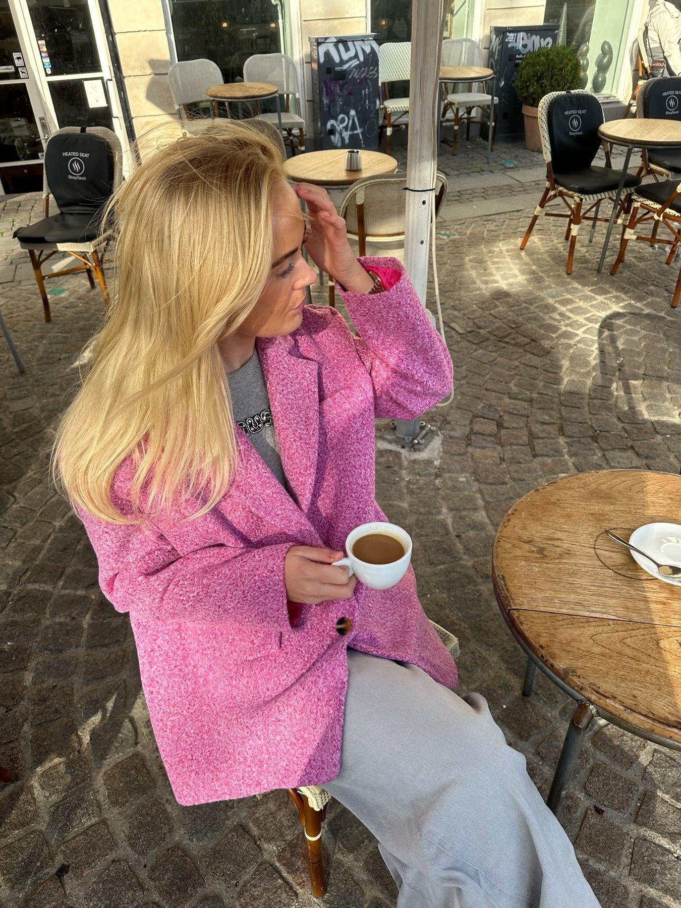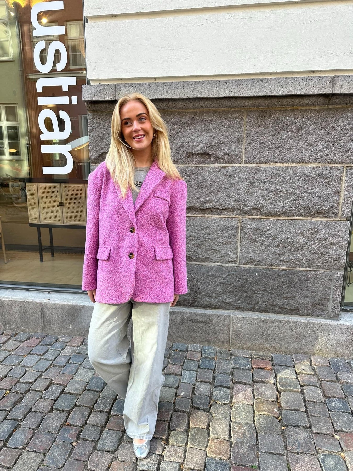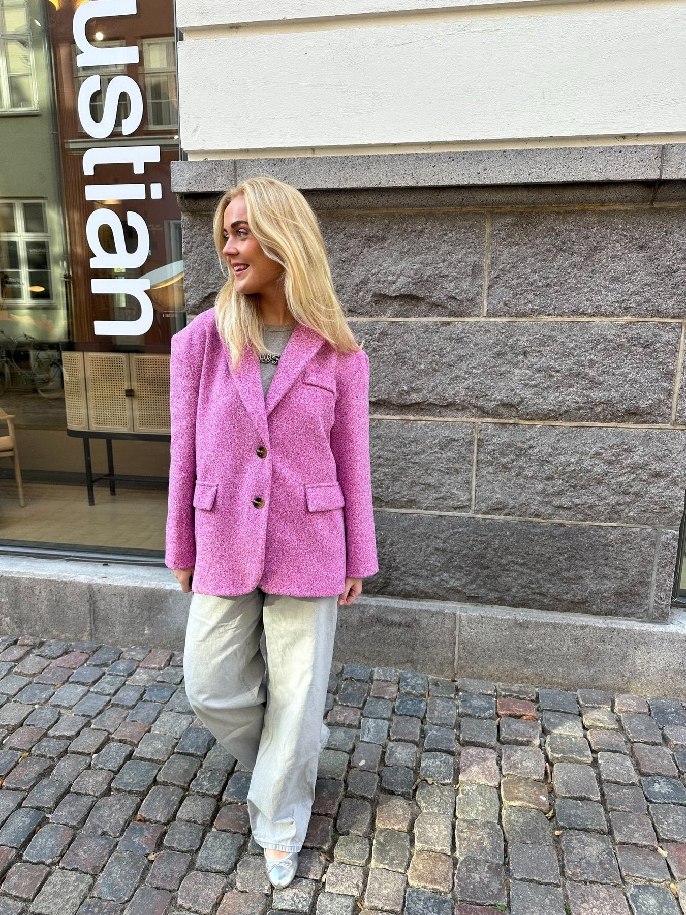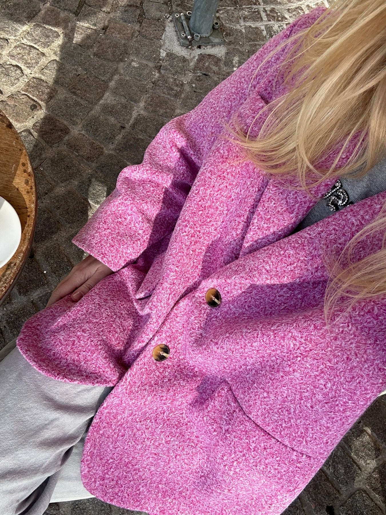 Blazer aus Wollmaterial, perfekt für die kühlen Herbstabende. Der Blazer hat die coolste Passform und ist dick im Material. Der perfekte Blazer für die Kaffeepause mit deinen Freundinnen.