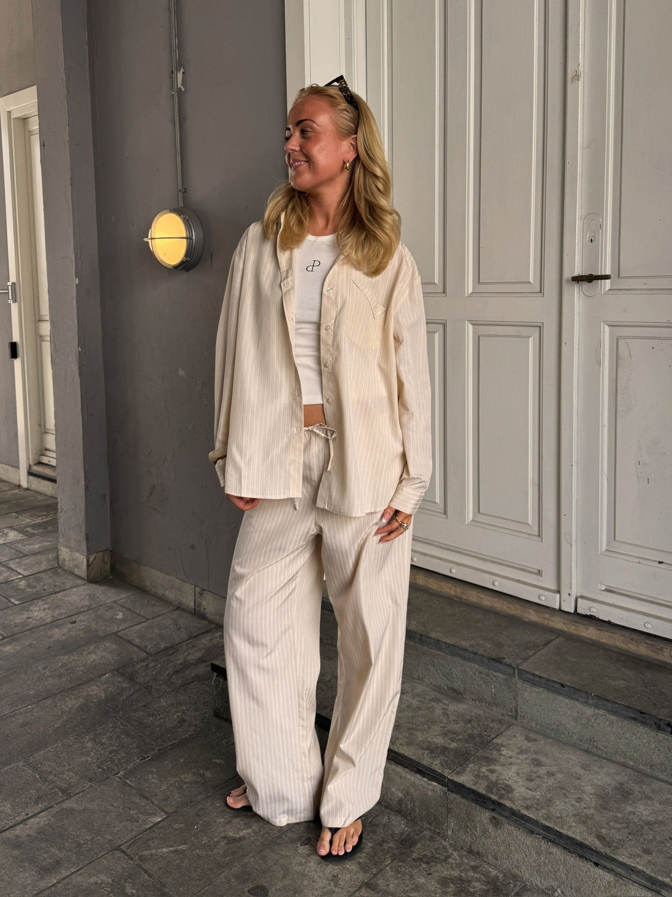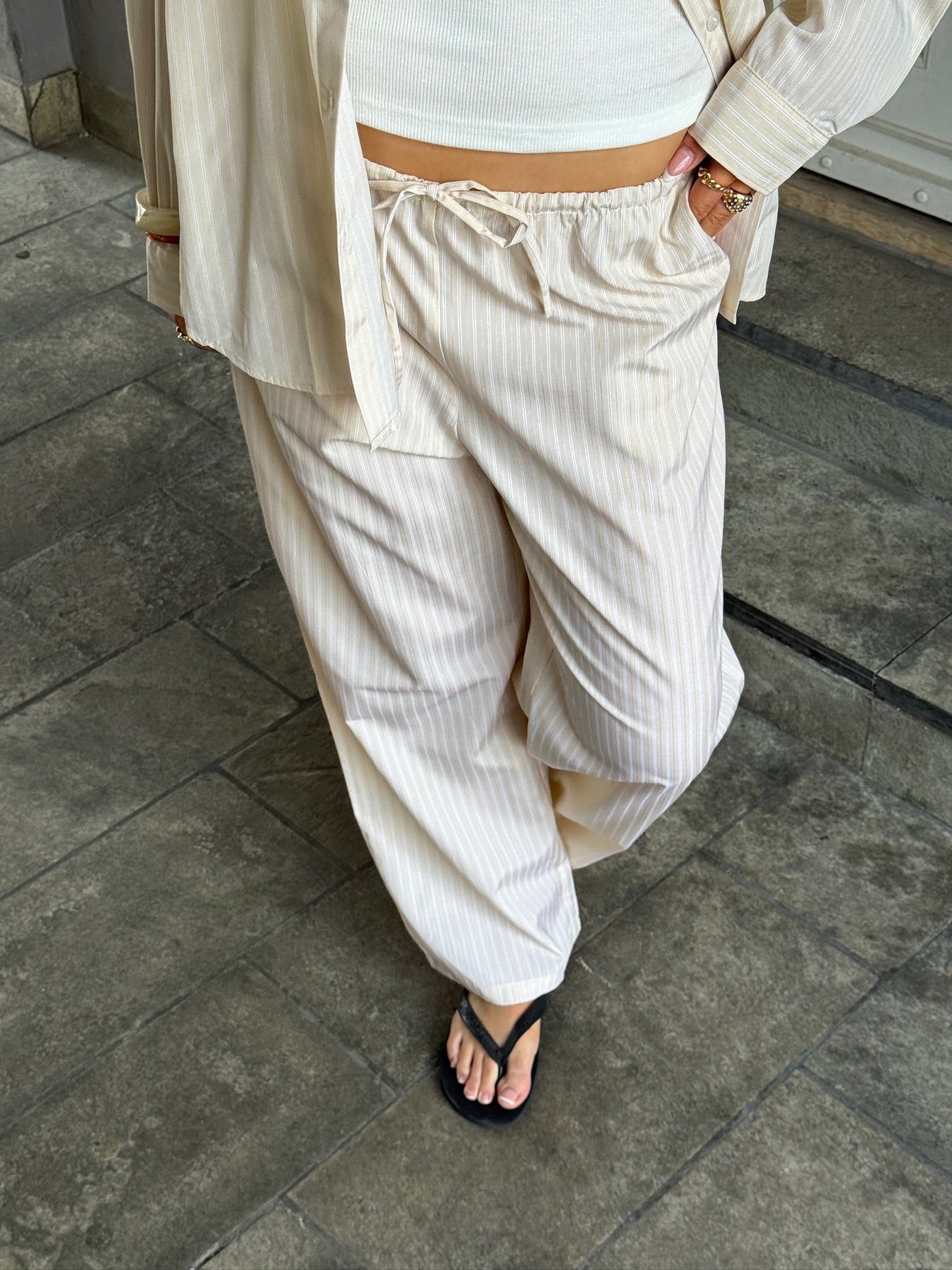 Thalia Loose Fit Pants - Butter Yellow Stripe